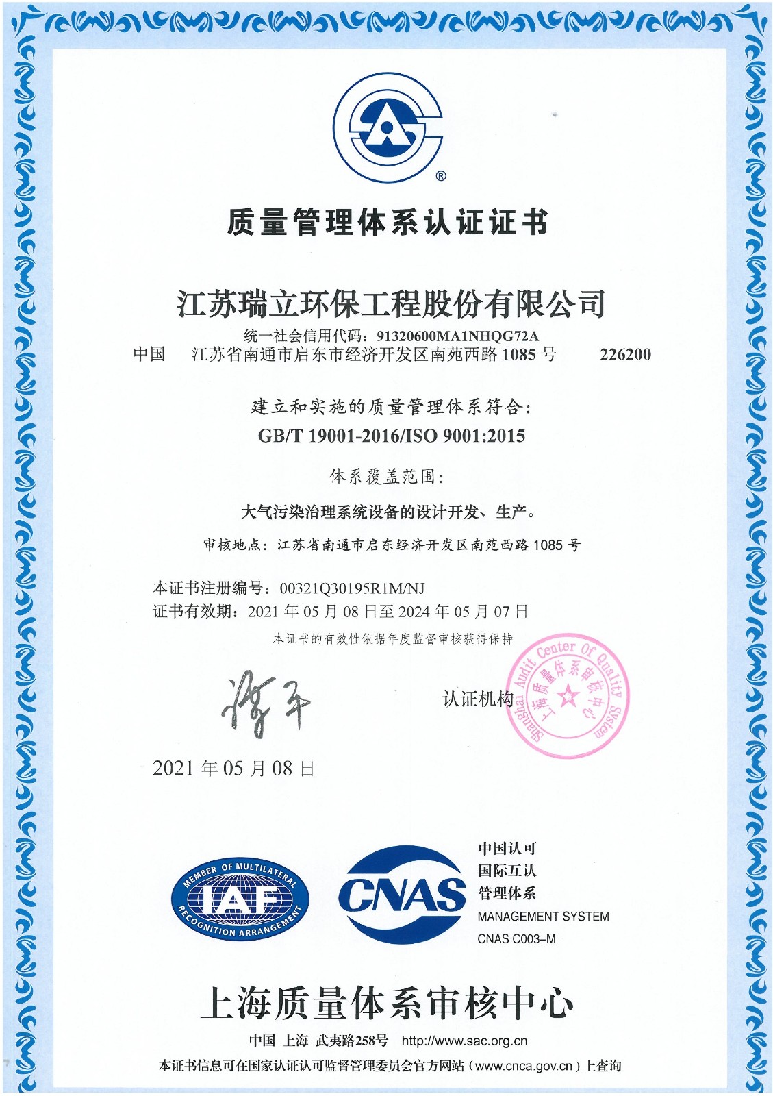 江蘇瑞立環(huán)保工程股份有限公司(原江蘇瑞帆環(huán)保工程股份有限公司),成立于2017年3月,注冊(cè)資金2000萬元,坐落于江蘇省啟東經(jīng)濟(jì)開發(fā)區(qū)南苑西路1085號(hào),為省高新技術(shù)企業(yè)、省民營科技企業(yè)、省科技型中小企業(yè)。公司是專業(yè)從事大氣污染治理設(shè)備設(shè)計(jì)、研發(fā)、生產(chǎn)、安裝、銷售、服務(wù)于一體的新型環(huán)保企業(yè)。是由江蘇瑞帆環(huán)保裝備股份有限公司(瑞帆環(huán)保)和自然人共同發(fā)起投資成立的股份有限公司,其主營環(huán)境污染治理工程、機(jī)電設(shè)備安裝工程、土壤修復(fù)工程施工;制造、銷售大氣污染協(xié)同治理系統(tǒng)設(shè)備、高爐煤氣干法除塵設(shè)備、焦?fàn)t煤氣凈化處理設(shè)備、大型耐高溫、耐酸袋式除塵設(shè)備、工業(yè)鍋爐煙氣脫硫脫硝設(shè)備、垃圾焚燒處理設(shè)備;環(huán)境污染治理及監(jiān)測(cè)技術(shù)的研發(fā)、技術(shù)咨詢、技術(shù)服務(wù);合同能源管理。公司產(chǎn)品主要用于冶金 、電力 、建材 、化工 、垃圾焚燒等行業(yè)的煙氣治理;公司還積極開拓服務(wù)領(lǐng)域及海外市場(chǎng),分別成立了鄆城縣綠維、曹縣蔚藍(lán)、南安市瑞立、莆田市瑞立、漳浦縣瑞立、淮安市瑞立、慶陽蔚藍(lán)等7家全資子公司承擔(dān)福建圣元環(huán)保股份有限公司的7家垃圾焚燒發(fā)電子公司的污染治理第三方運(yùn)營服務(wù)的業(yè)務(wù),公司部...
